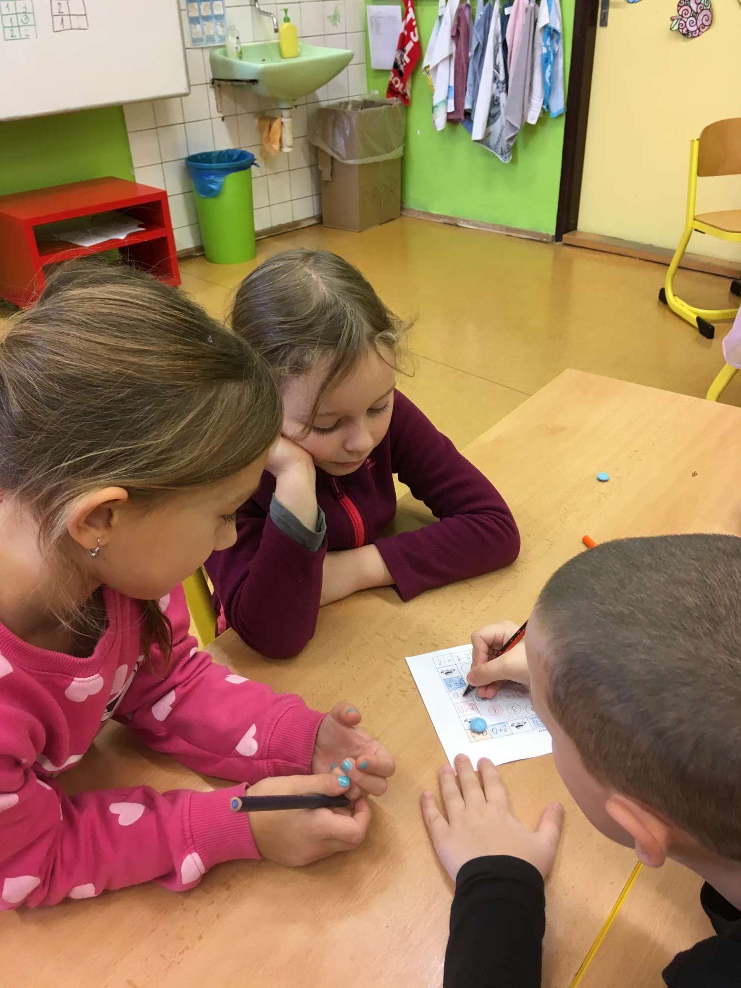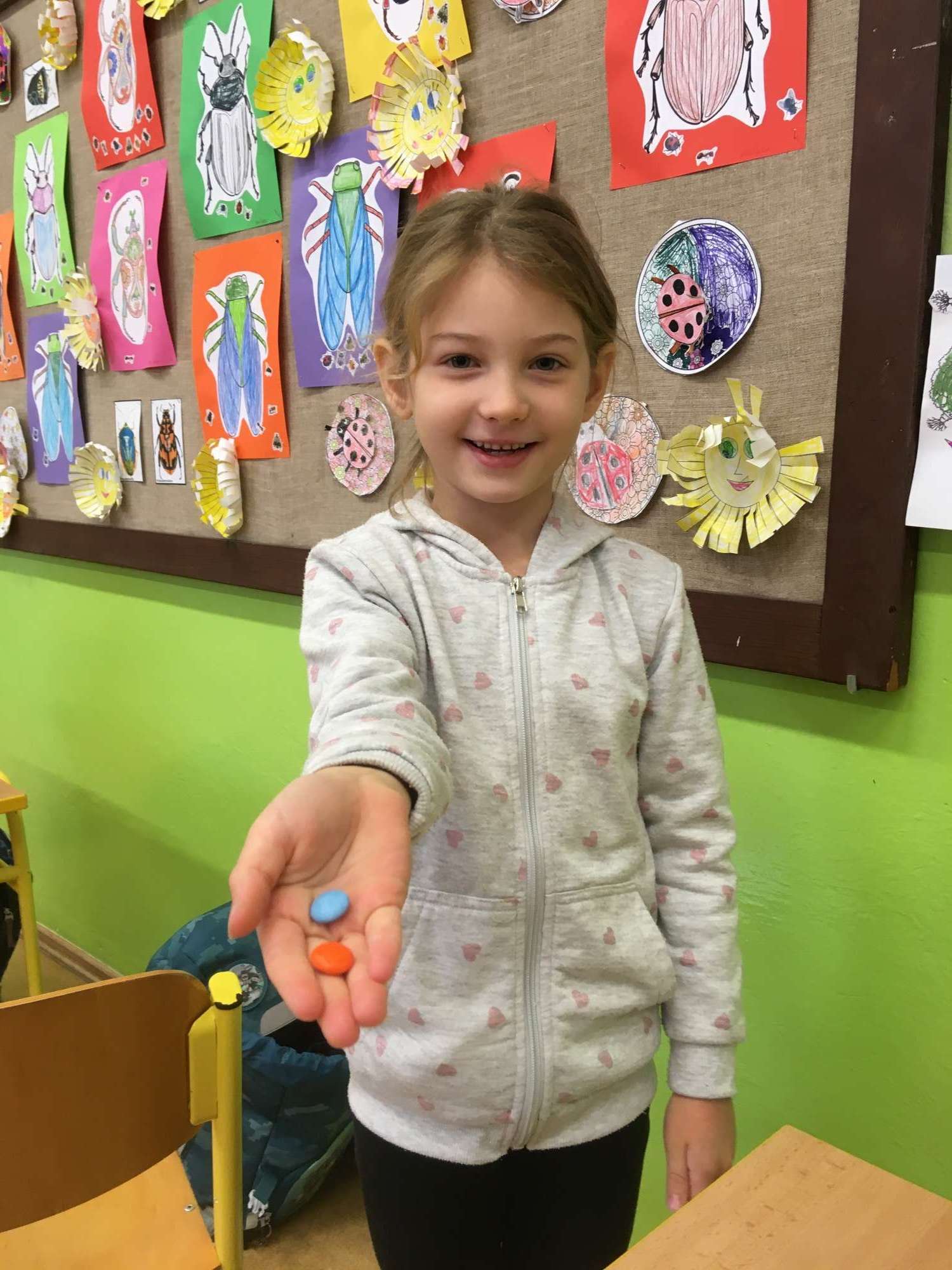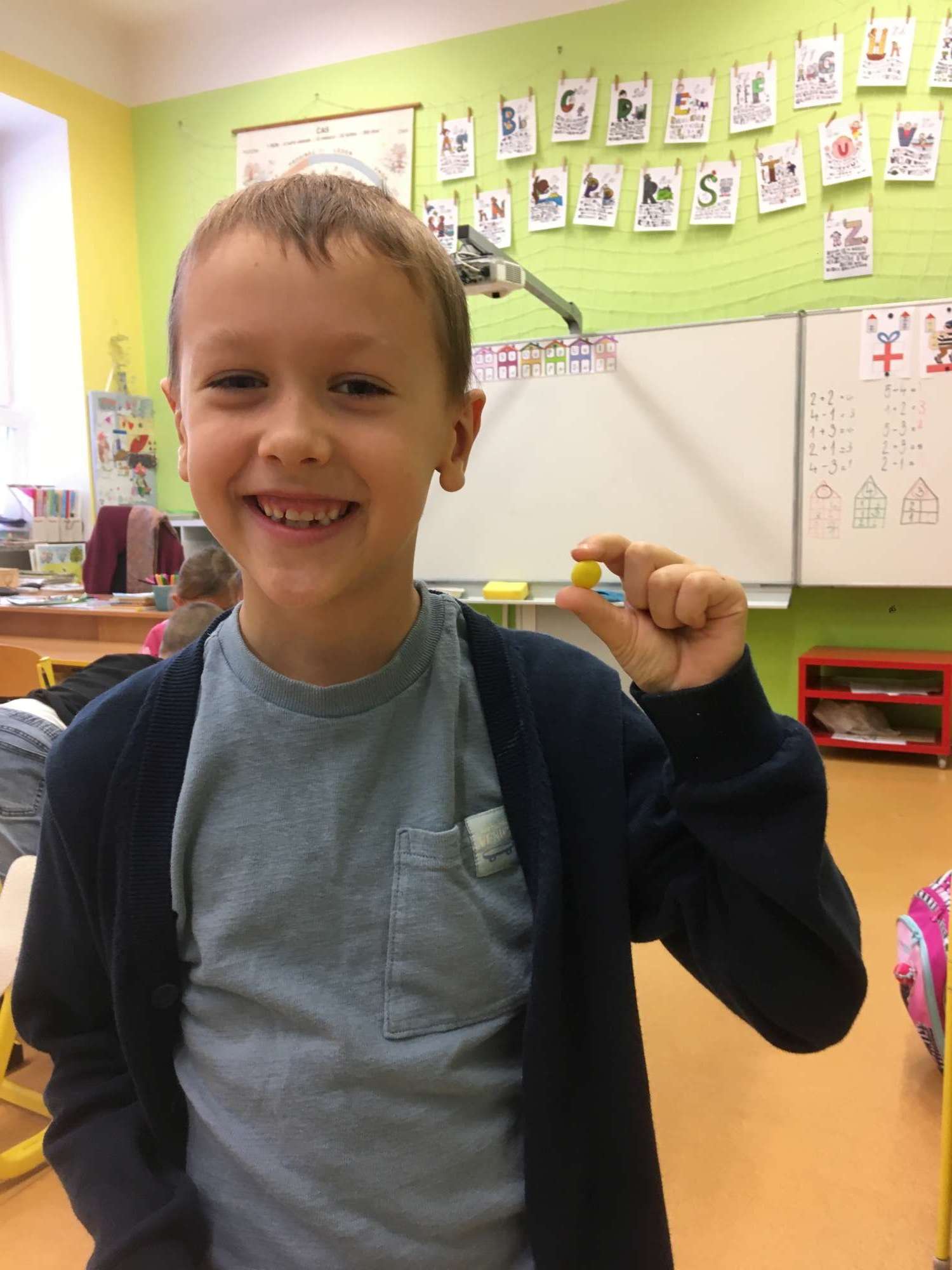 Matematika jako stolní hra a jako bonus výborné mlsání – lentilka. Broučci z 1. B počítají tak dlouho, dokud to všechno nesní 😊. Každá skupina hraje jen o 5 lentilek!