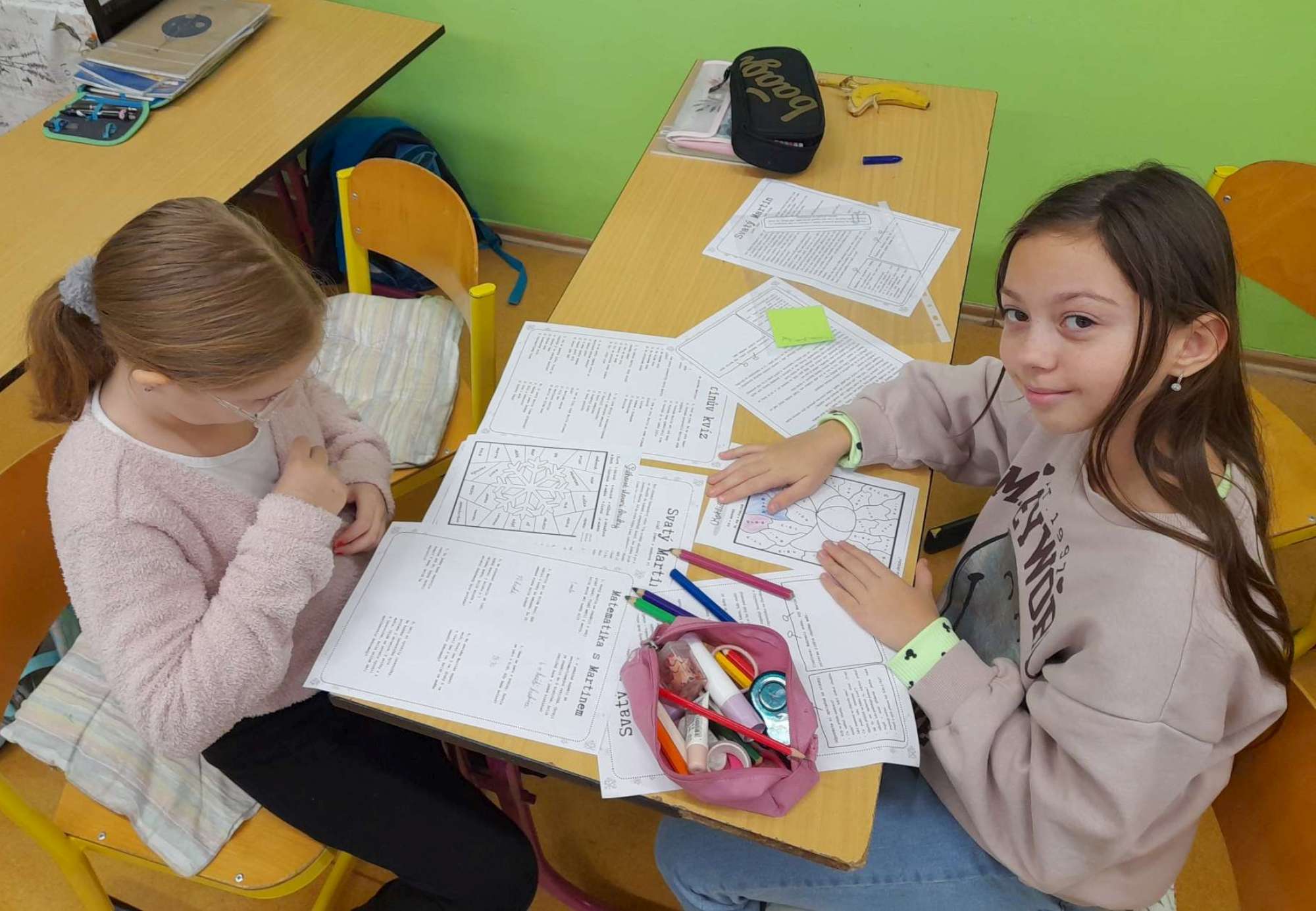 Žáci 5. A se na svátek svatého Martina věnovali různým tematickým aktivitám – sledovali video, řešili slovní úlohy, četli si příběh, vybarvovali obrázky, kreslili svatomartinského koně a vyráběli husy. Podívejte se, jak pracovali a jak se jim výrobky povedly.