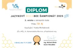 Třída 7. B se v angličtině společně s dalšími třídami zapojila do 7. ročníku inovativní soutěže pro školy s názvem Jazykový WocaBee šampionát. Soutěží se online v aplikaci na učení slovíček – WocaBee.